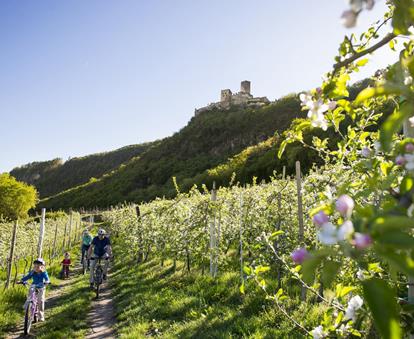 cycling tours in southern South Tyrol. This area boasts charming landscapes and numerous places to stop for a bite to eat or a drink. In the footsteps of the South Tyrolean Apple, you can cycle with the entire family from village to village.