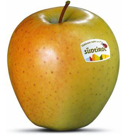 The Golden Delicious is our principal variety in South Tyrol and, so to speak, the flagship of South Tyrolean fruit growing. Picked between early September and mid-October, this all-rounder among apple varieties produces good quality, especially in higher growing locations where it also develops its typical red cheeks. Because of its balanced sugar-acid ratio, this apple is also very popular with children.