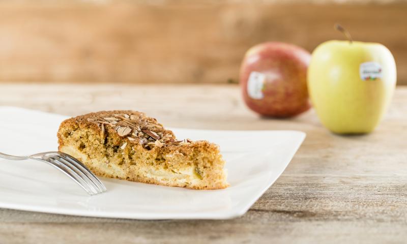 Wash, dry and core the Granny Smith apples, then peel, core and quarter them. Bring the water, sugar, cinnamon, cloves and lemon juice to a boil and immediately add the apple quarters. Cover and simmer for about 5 minutes. Drain the apples and let cool. Cream the butter well with the powdered sugar and vanilla; add the eggs and the yolk one by one, beat until fluffy. Whisk the cream of tartar into the freshly ground Kamut flour, mix with the warm milk and mix into the butter-egg mixture. Butter and flour a cake form and line with parchment. Pour half the batter into the cake pan, arrange the well-drained apple pieces on top and cover with the remaining batter. Garnish with the almond slices.