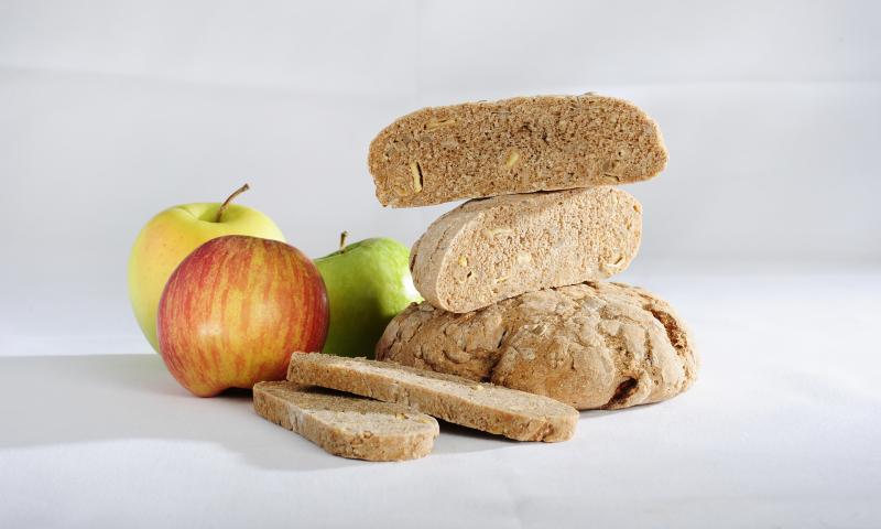 Put the spelt flour in a bowl, add the sunflower seeds, sesame seeds and salt and stir in well. Crumble the yeast into the mixture, pour in lukewarm water, mix and knead well. Squeeze the dried apple slices by hand and add to the dough. Form small loaves, place on a well-greased oven tray and bake at 190° C for approx. 35 minutes.
