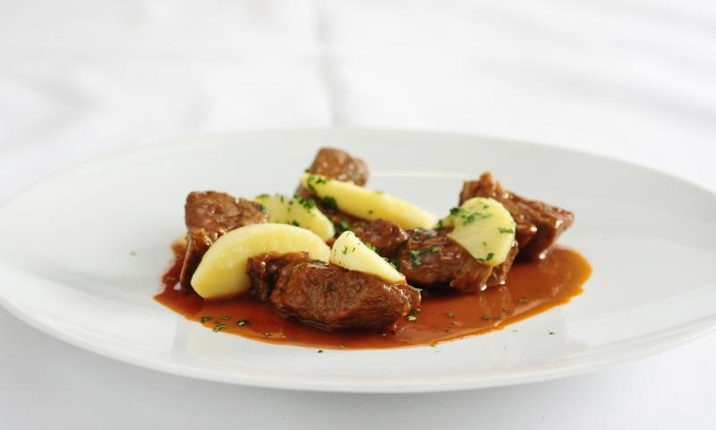 Excellent side dishes include boiled potatoes, potato dumplings and potato purée, “spätzle”, white bread “knödel” dumplings or rice.