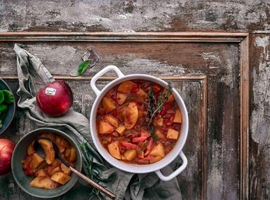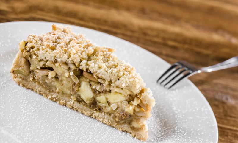 Stir butter, sugar and spices until smooth. Add the oil and the flour sifted with the baking powder and knead into dough. Refrigerate. (Tip: make the dough one day ahead.) Peel, core and dice the apples and mix well with the remaining ingredients.Remove the dough from the refrigerator, knead quickly and roll out to about 8mm (1/3 in.). Cut out a 26cm circle and place in the bottom of a 26cm springform pan. Top with the apple filling and press down lightly. Rub the rest of the cold dough into streusel on top with a grater or through a sieve.