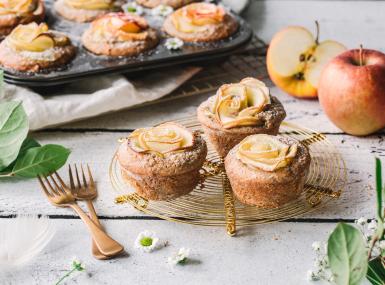 In the meantime, to make the filling, dice the apples finely and drizzle with a little lemon juice. Place the butter, sugar and cinnamon in a bowl and combine well.