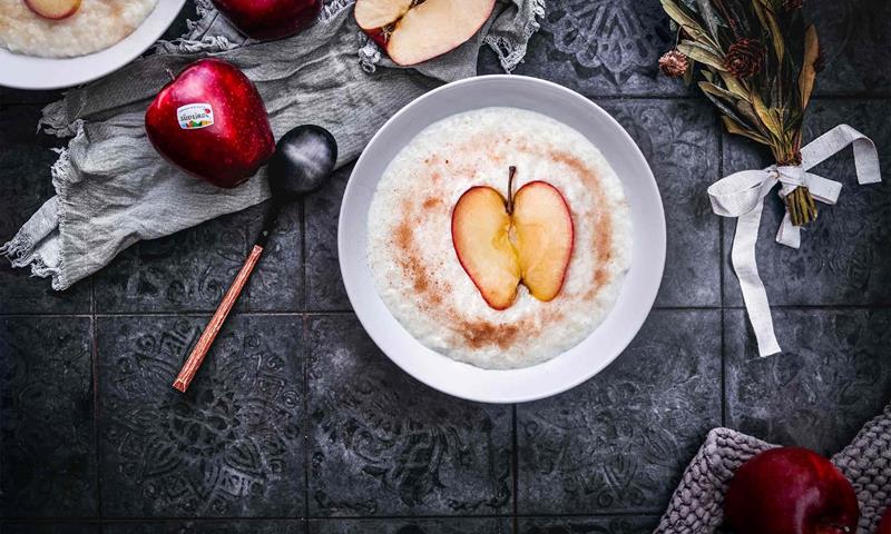 Tip: Cocoa-covered marzipan balls are the perfect decoration for this dessert. You can also add raisins to the chopped apple mix.