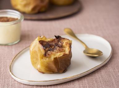 While the cakes bake, start preparing the stewed apples. Peel, core, and cube the apples. Pour into a pan and stir with lemon juice. Add the remaining ingredients - except corn flour- and cook at medium-high heat. The apples will have to be softened without losing their crunchiness. Mix the cornflour and some apple juice until it gets smooth, and then add to the apples. Bring to a boil to thicken the dough. Remove from the hob and let it cool down.