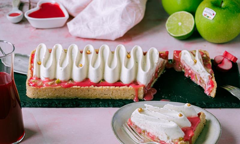 Either press the lime mousse out of the mold and place it on the tart or spread it lightly over the tart. The tart can be served immediately but is also delicious the next day after resting a bit. Store in the refrigerator!