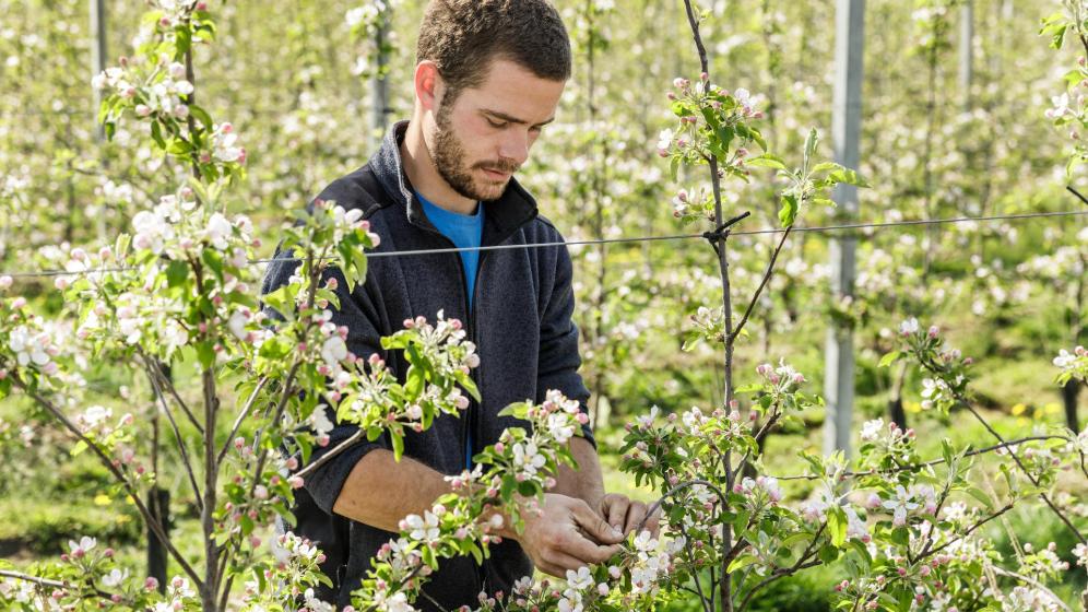 Valentin Bologna had to drag himself out of bed early this morning. The night was short, just like the nights before – there was a frost alarm! When the temperature drops below freezing in spring, the farmers try to protect the delicate apple blossoms with anti-frost candles or anti-frost irrigation. This sometimes means gritting your teeth and getting up in the middle of the night. “It can be annoying”, says Valentin. But working with and surrounded by nature means there is no such thing as a regular working day: the work is just as variable as the weather and the seasons.