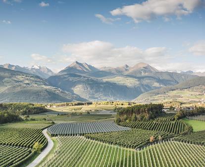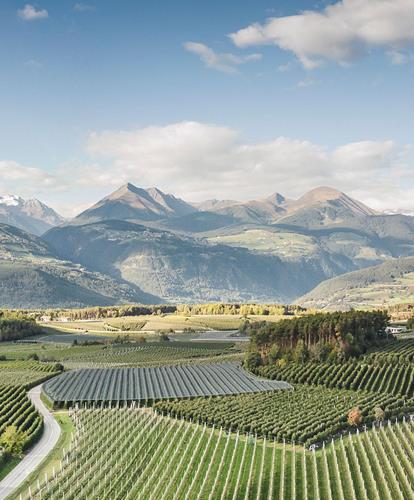 apple cultivation are particularly good in the Alps. Farmer’s apple orchards extend from Salorno/Salurn in the south through the Etschtal valley and the low mountain range hills of Burggrafenamt/Burgraviato to the Vinschgau valley. The Südtiroler Apfel PGI is also at home further east in the Eisacktal valley near Brixen/Bressanone.